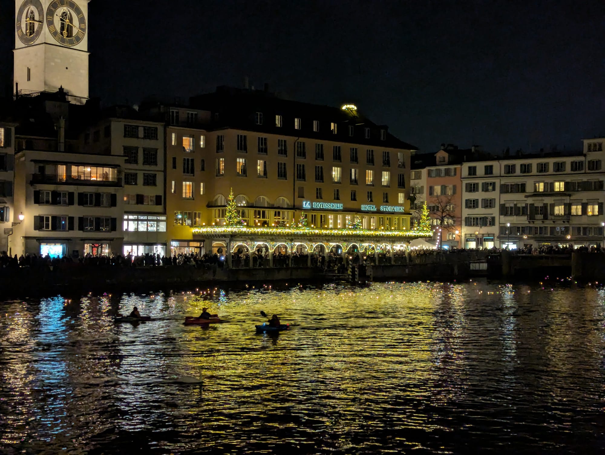 Since 1962, the city of Zürich has hosted the Lichterschwimmen during Advent. Mr. Obi, a teacher started this tradition with his students. It continued to be such a loved event that the City of Zürich now coordinates, along with the current lead teacher. Ms. Lanz and her students make 800 floating lanterns and set them afloat at 6pm the day before the winter school holiday break. It was a lovely evening to watch the children put the lantern into the Limmat River.