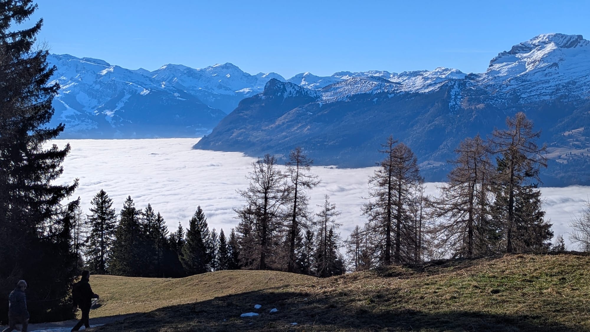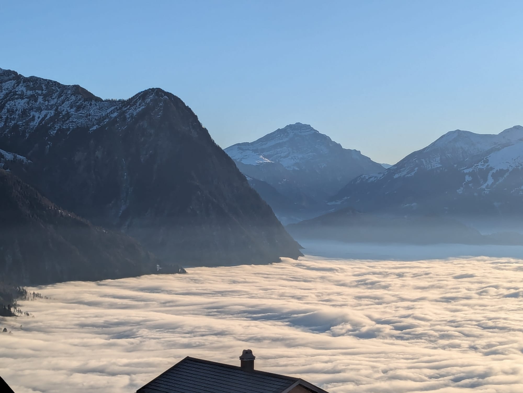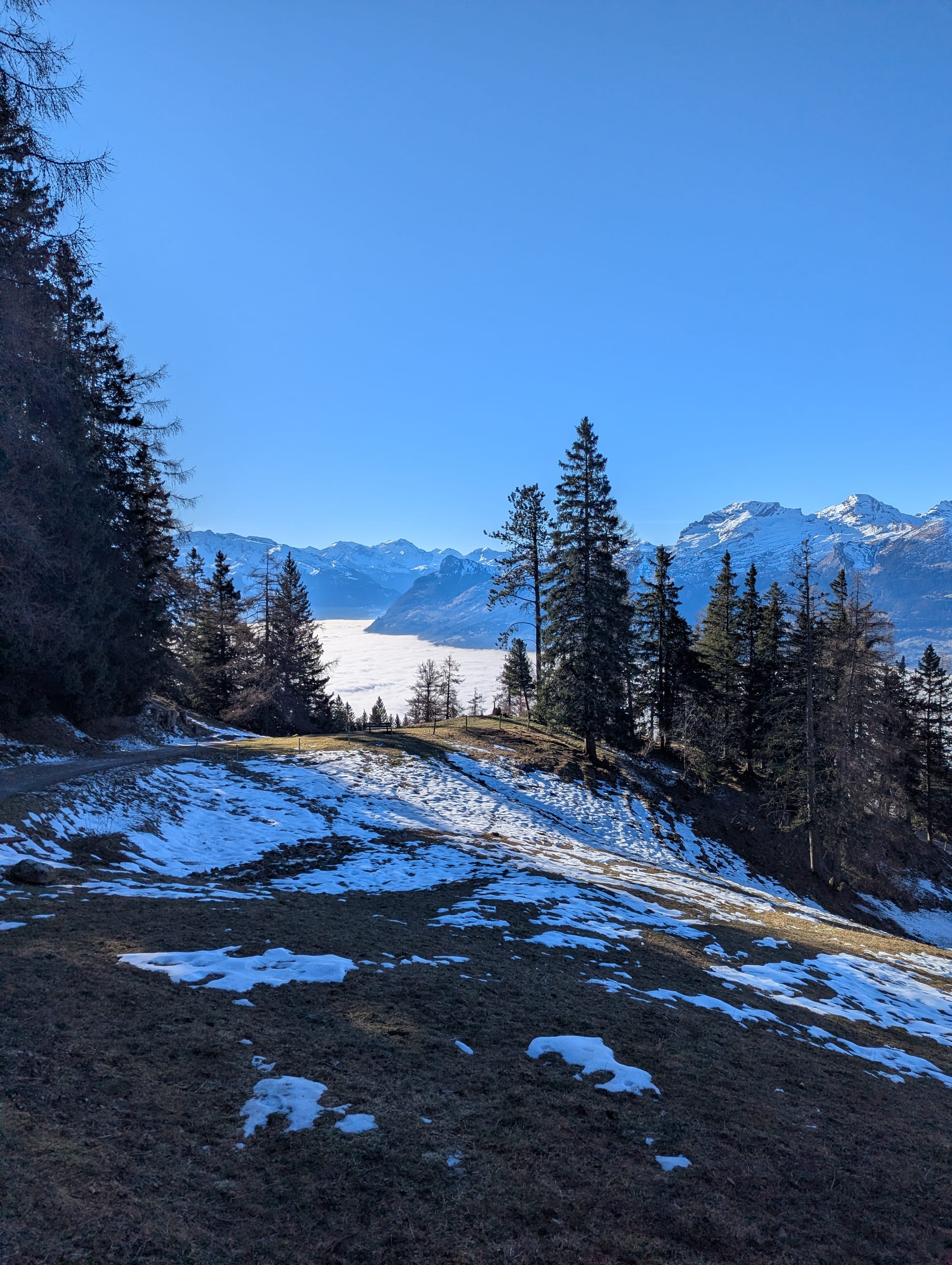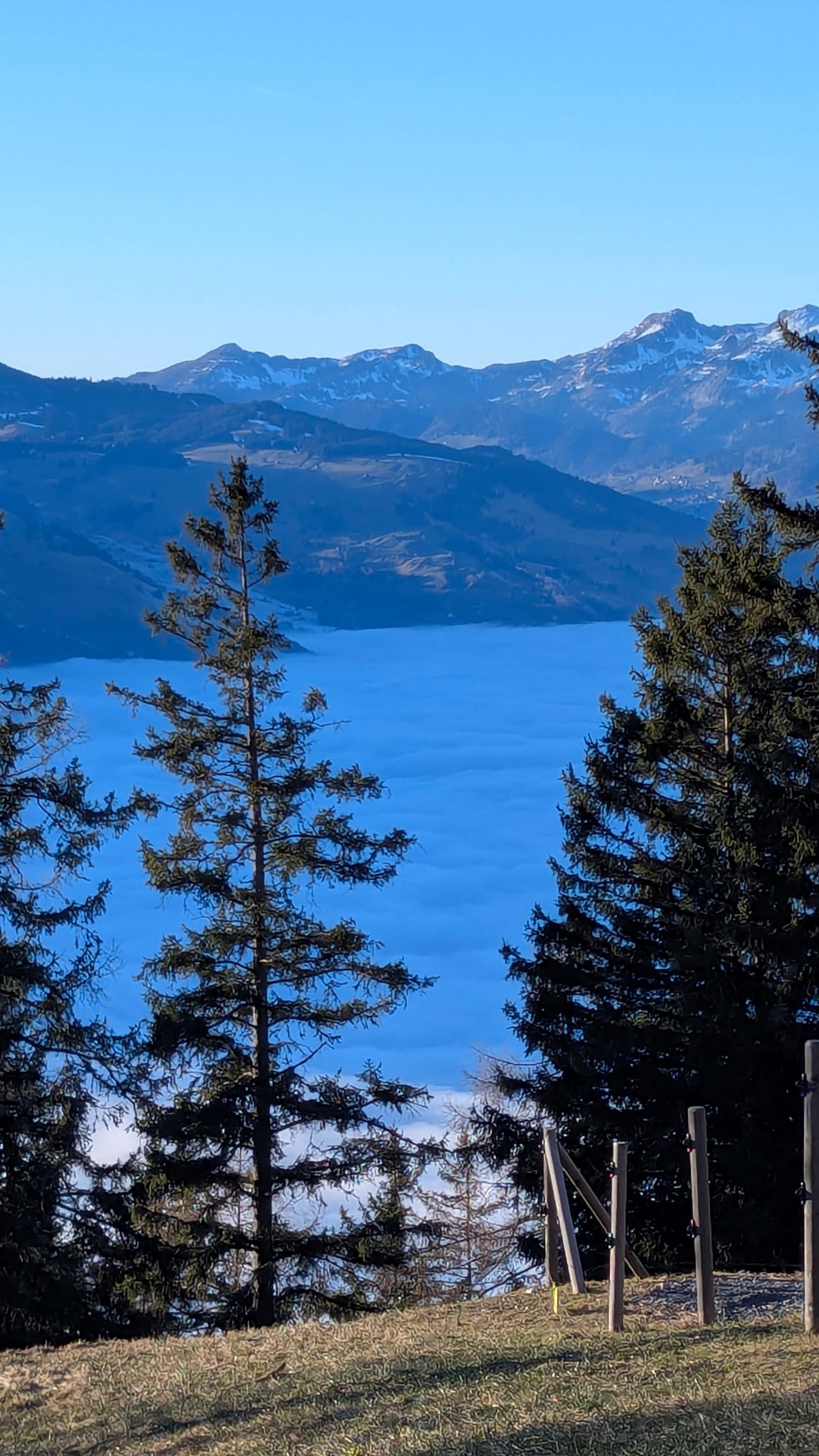 We spent a few days around Gaflei, Liechtenstein recently and it literally feels like you are above the clouds. It is 1500 meters above sea level so it is considered high altitude. I admit it clearly took me a bit to get acclimated. (I had a headache and I needed to take catch my breath the first couple minutes of walking). But, it was all worth it as it felt like you were above the clouds. We stayed in Triesenberg (1200 meters above sea level) which is 13 minutes by car/bus further down the mountain and the fog was so thick it was unbelievable. You could see it creeping into the car garage and at times - at night barely able to see across the street. Looking out - at times - it looked more like a lake than looking down a mountain with fog. The photos were all taken either at the top or on the way up the mountain and all on the same weekend.